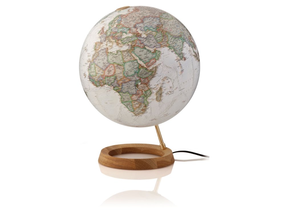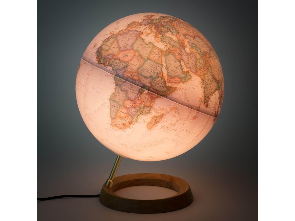 Dekorativní globus ve stylu antik a v designu National Geographic - oceány v barvě slonovinové kosti a zvýrazněné hranice jednotlivých států. Celkově působí velice elegantně a decentně. Podstavec je dřevěný odlehčený, a zemská osa kovová. Globus se skvěle hodí především jako bytový doplněk k tmavému i světlému nábytku a jako decentní přisvícení místnosti. Popis v anglickém jazyce. K výrobku je přiložen návod na výměnu žárovky. Náhradní žárovka není součástí balení a je běžně dostupná v obchodní síti.
